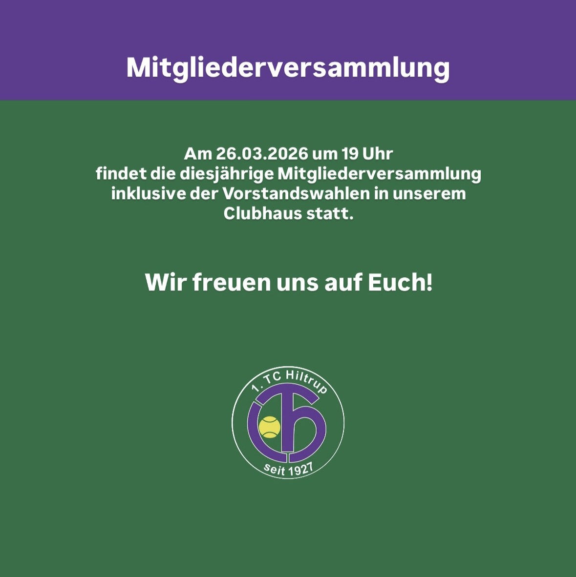 wir möchten Euch herzlich zur diesjährigen Mitgliederversammlung am 26. März 2026 um 19:00 Uhr in unser Clubhaus einladen.